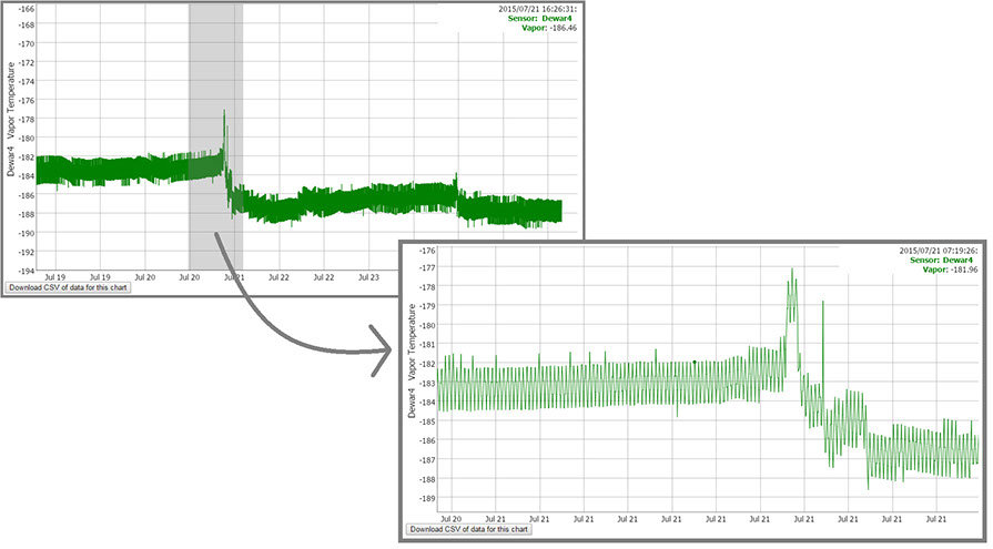 A small, remote federal research lab with a few cryo freezers has been planning an upgrade to their lab, with all personnel participating in the planning. One of the researchers realized she left her planning notebook in the lab over the weekend; when she went to the lab to pick it up, she realized the temperature warning alarm on one of the freezers was sounding. She put the key samples that were at risk into an ice chest and added liquid nitrogen to keep everything frozen—saving the day. On Monday morning, the principal investigator researched temperature monitoring and alerting systems, received pricing and capability information from the most promising vendors, and then ordered Coris Extreme Temperature Sensors to monitor the freezers.